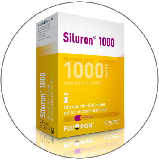 A geração de óleos Siluron® é caracterizada por sua alta resistência à emulsificação. Isto é baseado em uma mistura inteligente das moléculas e na viscosidade. A facilidade de injetar em pequenas incisões é uma das vantagens dos óleos de silicone da Geuder.
