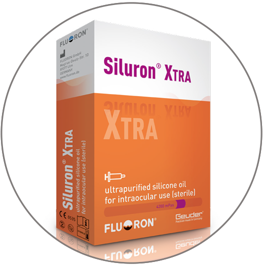 A geração de óleos Siluron® é caracterizada por sua alta resistência à emulsificação. Isto é baseado em uma mistura inteligente das moléculas e na viscosidade. A facilidade de injetar em pequenas incisões é uma das vantagens dos óleos de silicone da Geuder.